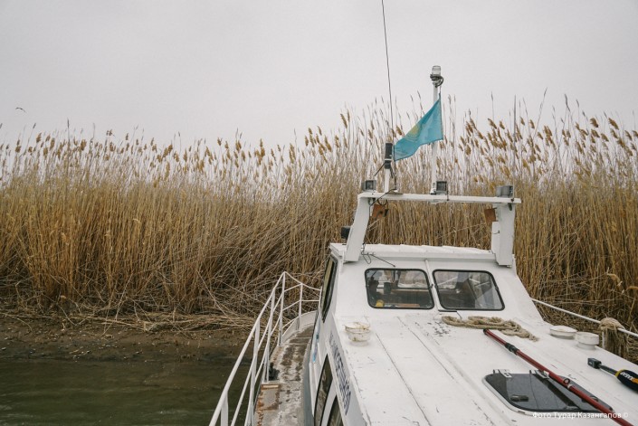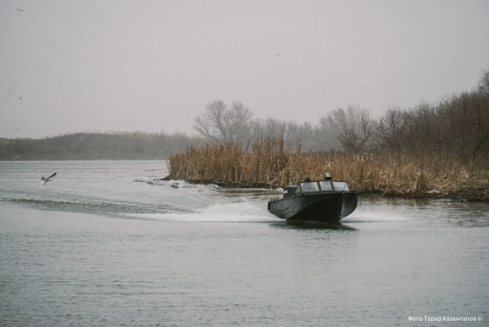 Мы садимся на катер территориальной инспекции и отправляемся в путь, чтобы проверить гипотезу Армана насчет дна и в целом посмотреть, в каком состоянии Урал и его берега.