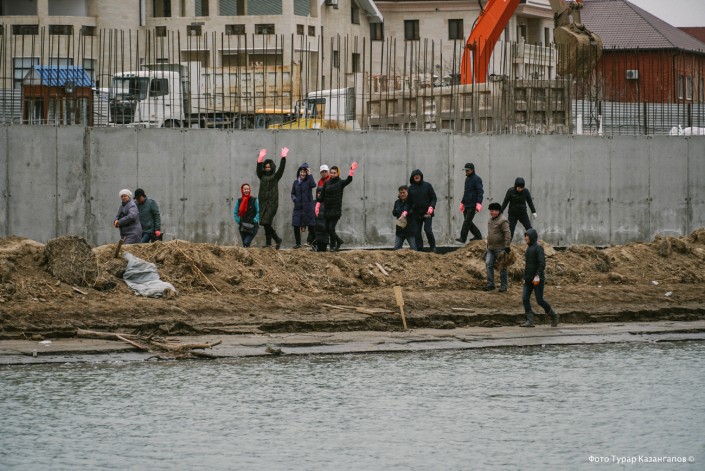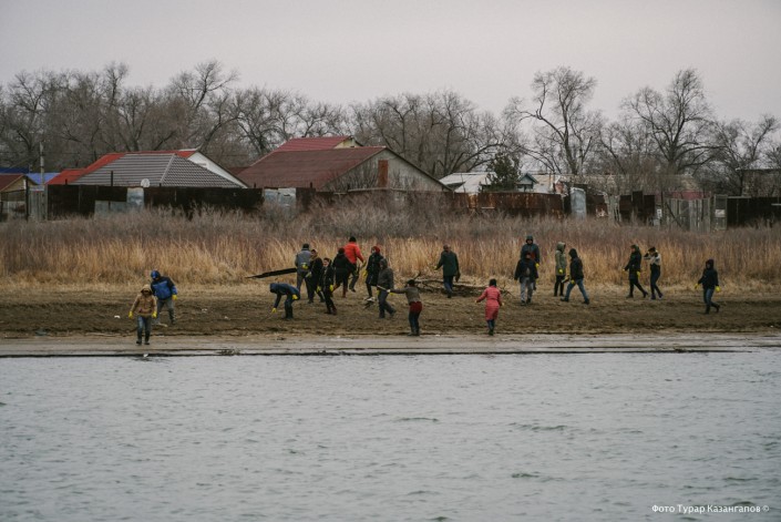 В тот день в Атырау был объявлен городской субботник. Людей призывали принять участие в уборке берега Урала, в том числе очистить его от мертвой рыбы. Объявление было разослано в социальных сетях и растяжкой висело в центре города.