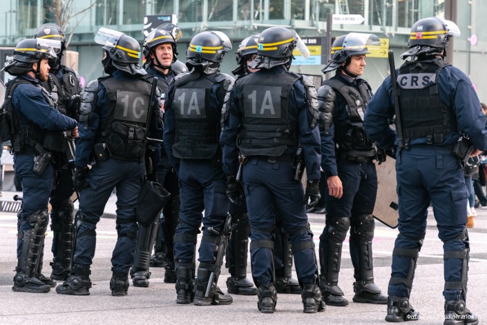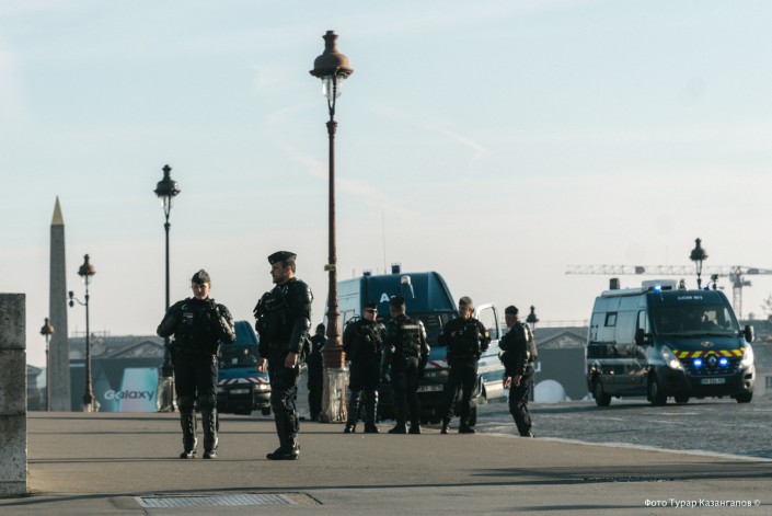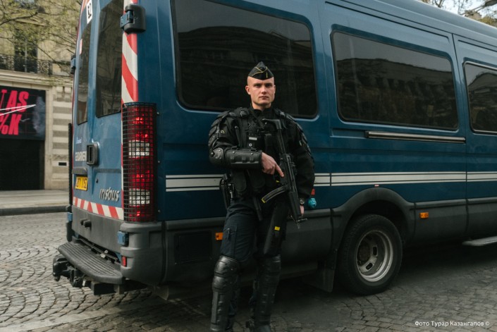 Ранним субботним утром повсюду дежурят полицейские и жандармы, экипированные с головы до ног.