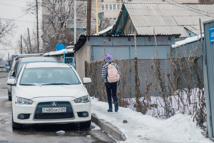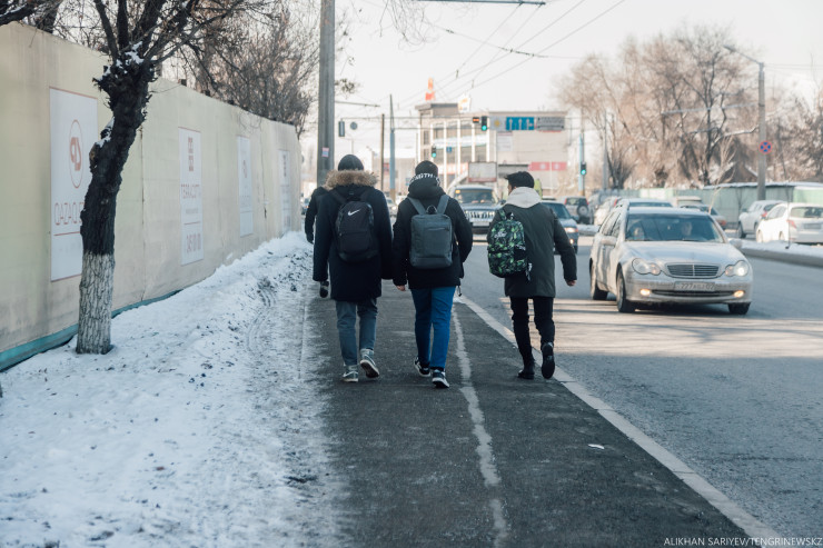 "Мы с ней ходим в школу с казахским языком обучения, дорога занимает 30 минут, а мой внук ходит в другую, и он затрачивает 40 минут", - говорит собеседница.