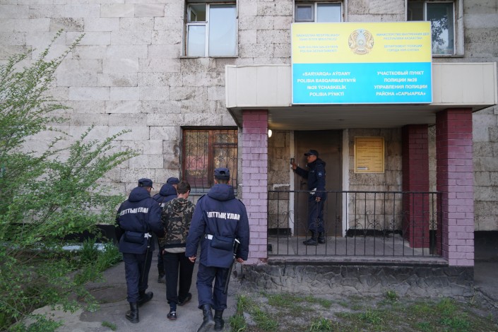 Старший лейтенант Асхат Байдраков служит здесь уже давно. Сегодня он выполняет обязанности дежурного по войсковым нарядам района Сарыарка. Это значит, что он должен объезжать и проверять все маршруты патрульных, кроме того, старшие нарядов незамедлительно докладывают ему о каждом происшествии на территории района, поэтому "экскурсию" нам будет проводить именно он.