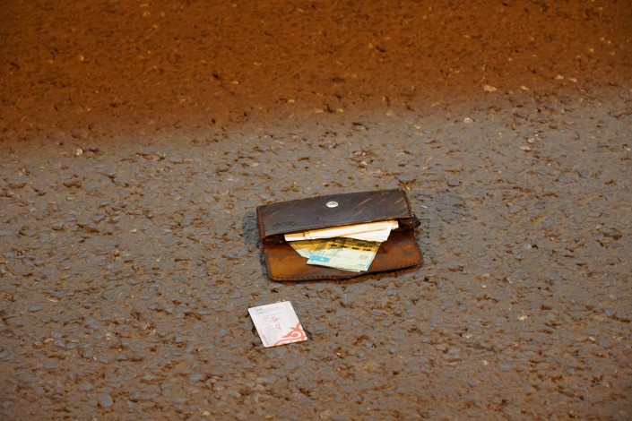 Полночь. Дежурство подходит к концу, и мы возвращаемся в районный отдел полиции. Прямо возле железнодорожного вокзала нас останавливают постовые, оказалось, что только что они нашли портмоне с деньгами. По-видимому, кошелек обронили на пешеходном переходе и долгое время его никто не замечал, до того момента, как по нему проехала машина и деньги рассыпались прямо по дороге.