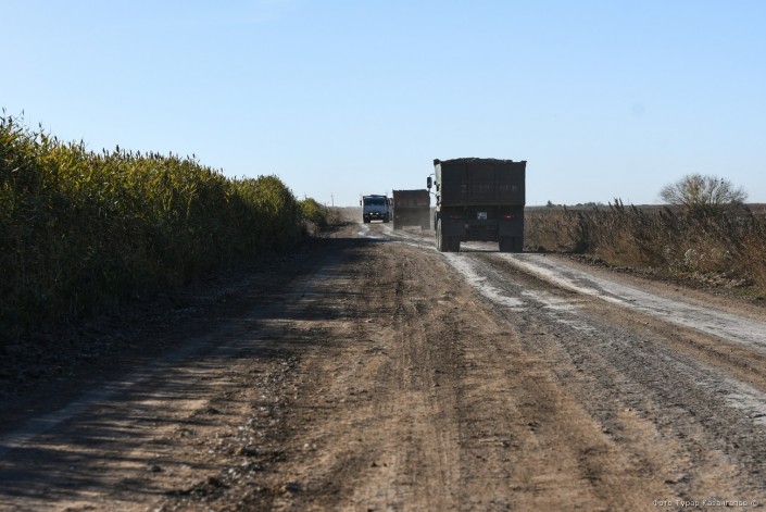 От жилых массивов к Талдыколю ведет ухабистая грунтовая дорога, по которой туда-сюда снуют строительные КамАЗы.