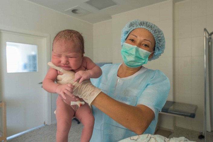 И вот в руках Актолкын маленький живой пищащий комок. Это - девочка.