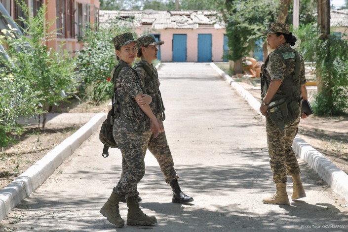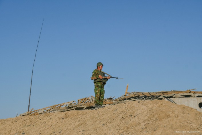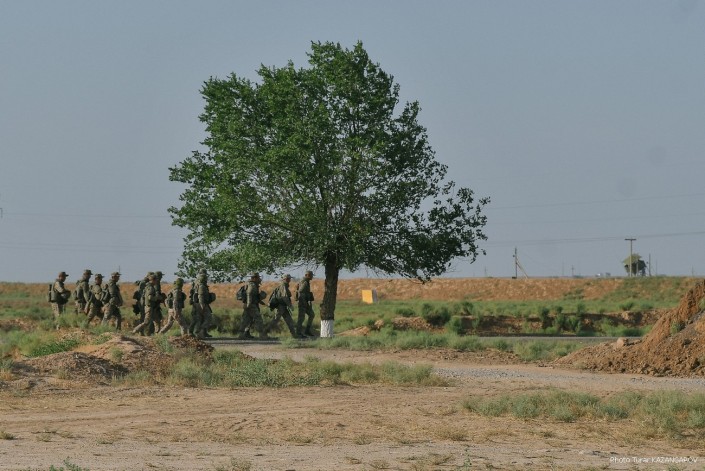 Министр обороны Нурлан Ермекбаев провел обход территории, проверил работу саперов и отправился в в административную половину воинской части.