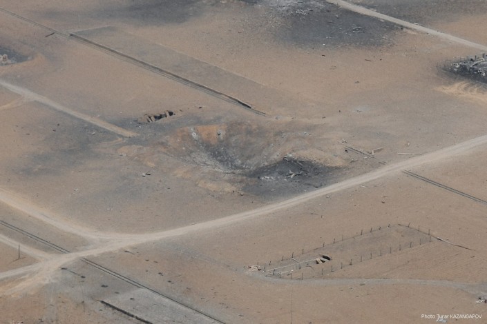 Но жертв и разрушений могло быть и больше, если бы разрушительная взрывная волна и разброс боеприпасов не направились в степь. Черные участки на снимке выше -  места падения снарядов.