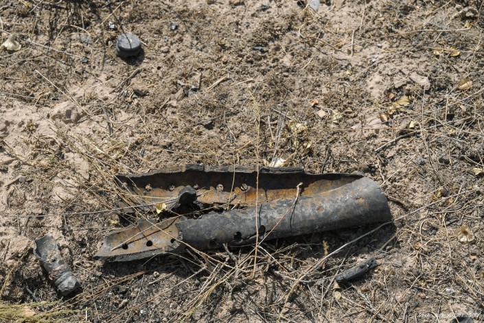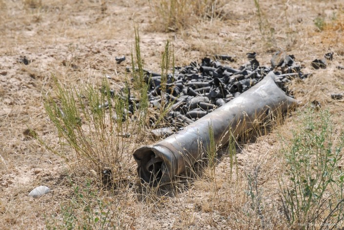 Все фрагменты разорвавшихся снарядов складируют в одном месте.