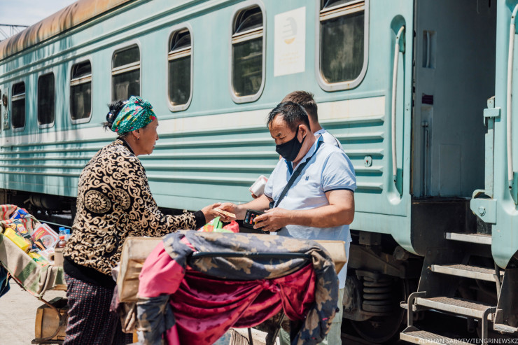 "Внимание! На второй путь прибывает пассажирский поезд Кызылорда - Семей". После этого объявления на станции все начинает как-то молниеносно оживать. Продавщицы, за пять минут до этого стоявшие со скучающим видом, начинают суетиться, каждая хватает свою тележку и торопливо бежит к перрону. На станции поезд будет стоять недолго, а это значит, что у них есть всего несколько минут на то, чтобы найти своего покупателя.