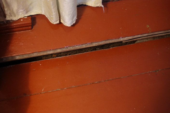 За годы ожидания сноса ее дом просел. Приходится постоянно делать ремонт, временами откачивать воду.