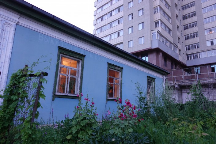 С одной стороны выросли новостройки, так что слободские избушки оказались почти прижаты к ним.