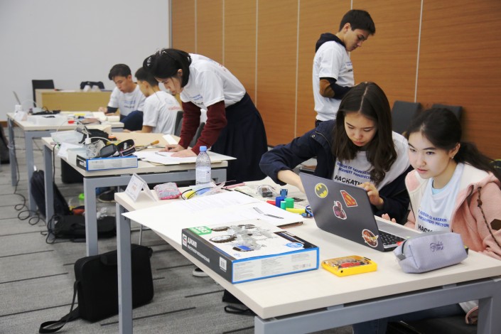 10 команд, состоящих из учеников старших классов из столицы и Караганды, должны были проявить смекалку и находчивость, все свои знания и навыки в робототехнике и за несколько часов сконструировать сортировочный конвейер.