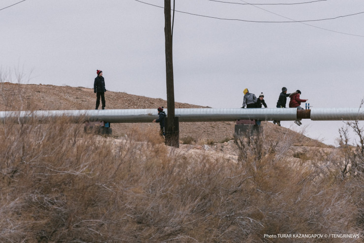 Пока одни сидели на трубе, другие изучали нас. А вернее, камеру нашего фотографа. Они тут же взяли Турара Казангапова под руки и долго не хотели отпускать.