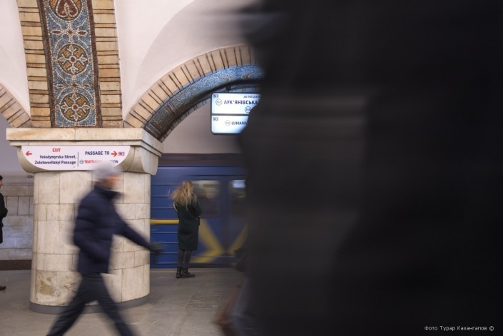 В Киеве темнеет рано, и чтобы успеть до сумерек снять как можно больше материала, по рекомендации местных, спускаемся в метро.