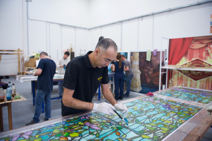 Сценографию и костюмы воплощала в жизнь известный итальянский художник-сценограф Манана Гуниа. Все оформление спектакля она выдержала в стиле арт-нуво, или, проще сказать, в стиле модерн. Одна из фишек этого спектакля заключается в том, что витражи живут на сцене самостоятельной жизнью и реагируют на события как живые создания, меняя цвет и освещение, а в последней сцене превращаются в весенний сад.