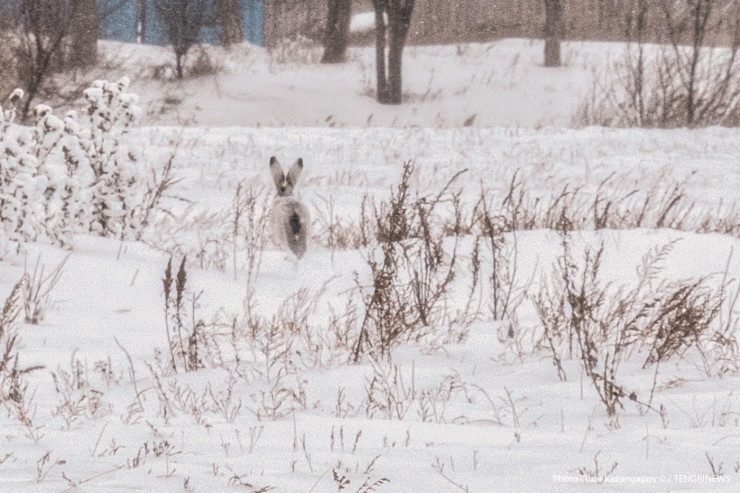 Зимой город Аркалык весь в заячьих тропах. Знающие люди обращают наше внимание на заячий помет. Так что следы этого зверя здесь видны невооруженным взглядом.