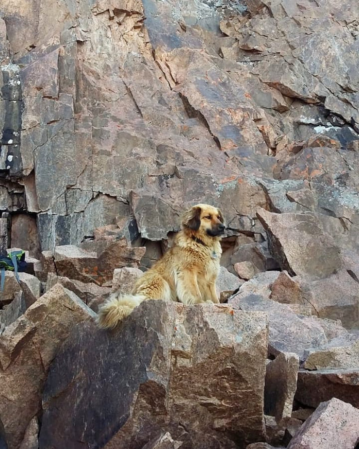 "В конце лета 2016 года Чуча увязалась за альпинистами на восхождение. Маршрут сложный – пик Маяковского, через "Тельняшку" (скалы в виде ступеней - прим. автора). На этом маршруте и людям бывает сложно. Альпинисты прошли маршрут, спустились с другой стороны и ушли вниз. И не заметили, что Чуча осталась на подъеме. Когда через несколько дней Чуча так и не вернулась в лагерь, стало понятно, что она застряла на горе. Альпинисты Юрий Абакумов, Олег Щукин, Юрий Стулов и Евгений Маслаков отправились на гору спасать Чучу. И нашли ее! Живую! После Олег признался: "Мы и не надеялись". Чуча провела одна на склоне горы 5 дней и 5 ночей. На высоте больше 3 400 метров над уровнем моря. Там нет воды, нет еды. Только камни и холод. Конечно, она сильно похудела за это время. Но тяга к приключениям оказалась куда сильнее. И уже на следующий день Чуча потопала вместе с ребятами из альплагеря на скальные занятия", - вспоминает Анна.