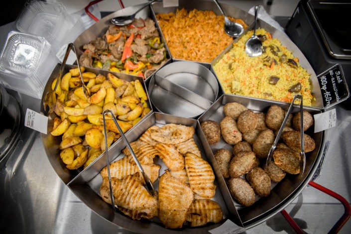 Поблизости с ним находится большой отдел кулинарии. Здесь гости супермаркета могут приобрести различные готовые блюда. Нежные блины с пылу с жару, курочка с овощами, шницель с картофелем и многое другое не оставят равнодушным даже самого искушенного гостя. Предусмотрена зона фуд-корта для покупателей, где можно выпить чашечку кофе или чая, есть специальное меню завтраков.
