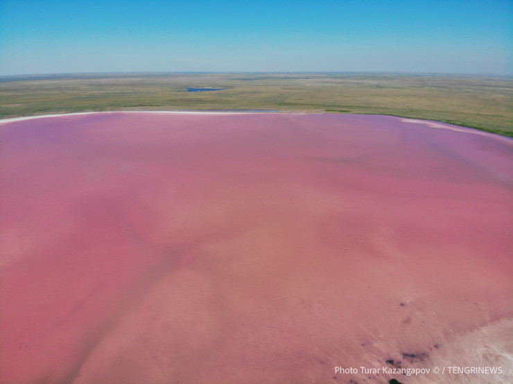 Считается, что розовый оттенок озеру придают водоросли Dunaliella salina. Такие же соленые озера есть и в других странах мира.