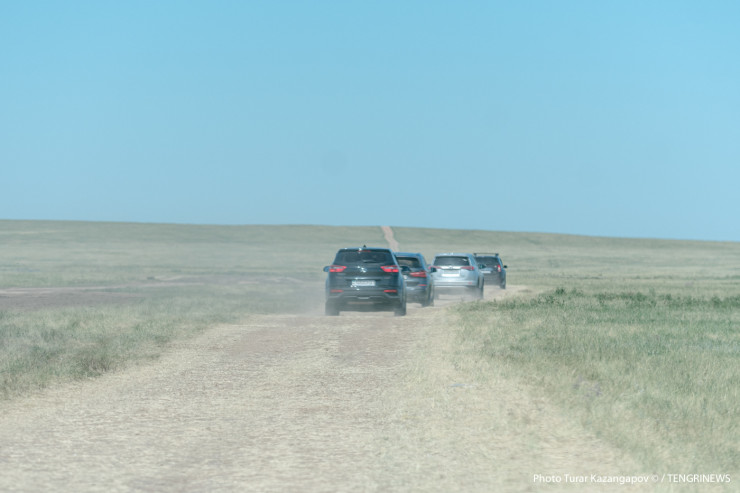 Дорога на розовое озеро лежит через павлодарскую трассу. Пока мы едем к пункту назначения, мимо проносятся привычные для этой местности пейзажи - степи, небольшие сопки, пасущиеся стада, редкие одинокие постройки.