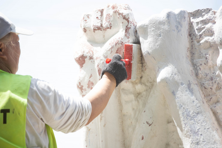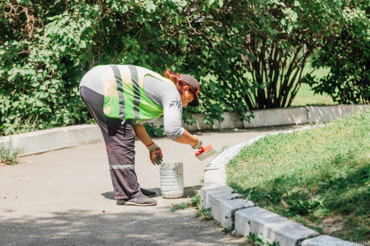Біз барғанда ескерткіш пен оның маңына жөндеу жұмыстары жүріп жатыр екен. Жұмысшылар ескерткішті қайта баяп, әрлеп жатыр.
