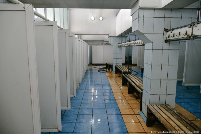 Потом шахтеры в раздевалке переодеваются.