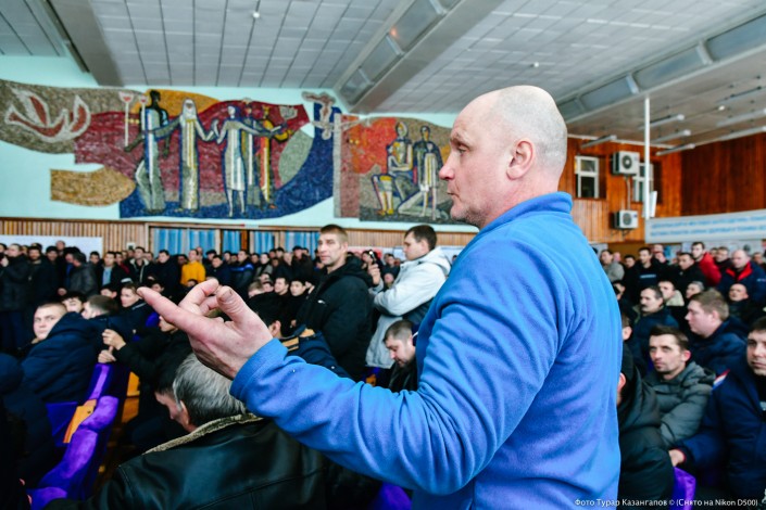 "Извините за глупый вопрос, но расскажите, пожалуйста, про свои тормозки...", - в итоге произношу я. Мой вопрос вызвал бурю смеха в зале. Но глаза шахтеров все равно говорили о том, что они еще не приняли нас. Они ждали не столько вопросов, а честной и открытой беседы.