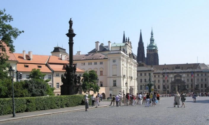 Чумная колонна на Градчанской площади была создана в 1726 году скульптором Фердинандом Брокоффом. Столб был установлен на месте, где в период чумы прямо под открытым небом велись непрерывные богослужения.