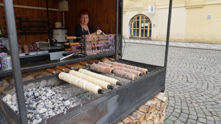 Ну и как же без традиционного лакомства - трдельника. Их продают практически на каждом углу. Традиционный трдельник - это такая сдобная трубочка, обычно она бывает полой, но ее еще заполняют мороженым по желанию.