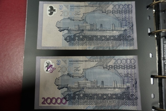 Две из этих 5-тысячных купюр имеют проблемы с рисунком крыльев барса.