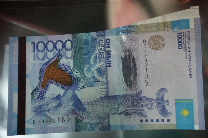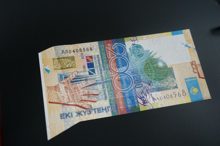 А здесь уже современная банкнота номиналом 200 тенге. Обратите внимание на края купюры.