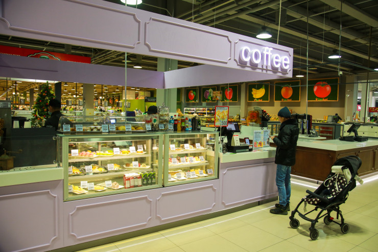 Рядом с кулинарными витринами расположена зона отдыха со столиками. Здесь покупатели могут насладиться вкусом кулинарных изделий с чашечкой горячего качественного кофе. В зоне отдыха можно поужинать, провести встречу или заказать еду с собой.