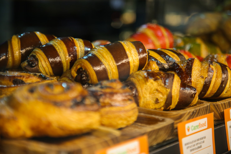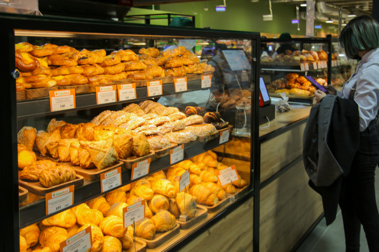 Справа на территории гастромаркета - собственное кулинарное производство Carefood и пекарня с "живым" хлебом, где ценители свежих кулинарных блюд могут выбрать продукцию с пылу с жару.