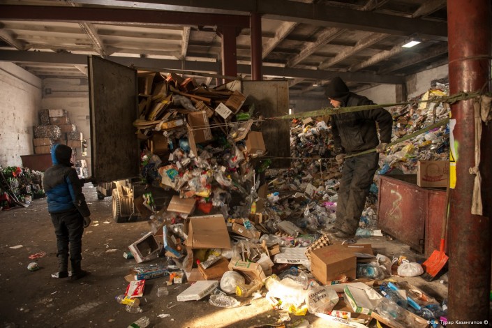 По словам Еркина Мукаева, компания зарабатывает за счет сортировки, бумаги, пластика. "Что продается - продаем, что не идет - складируем, что-то перерабатываем". За год выходит около 140 кубометров сырья, бумаги - больше 100 тонн. Это порядка 25 тонн в день.