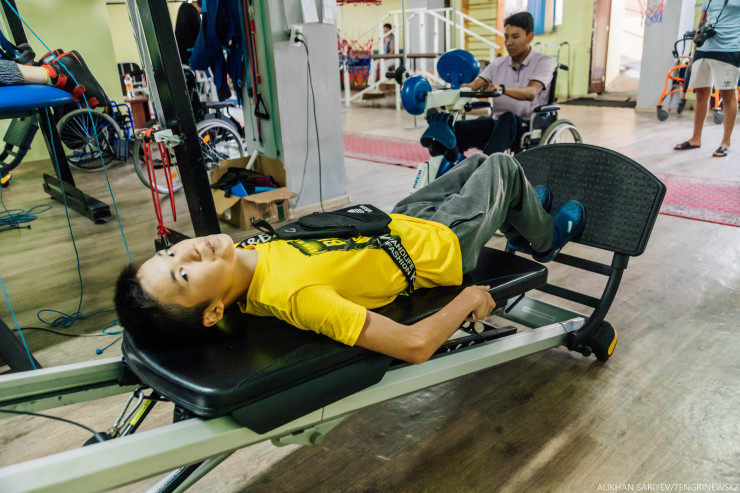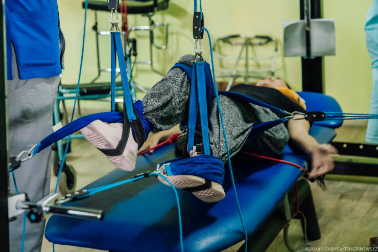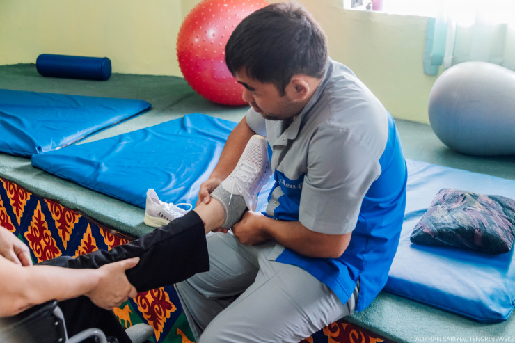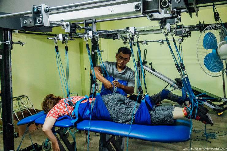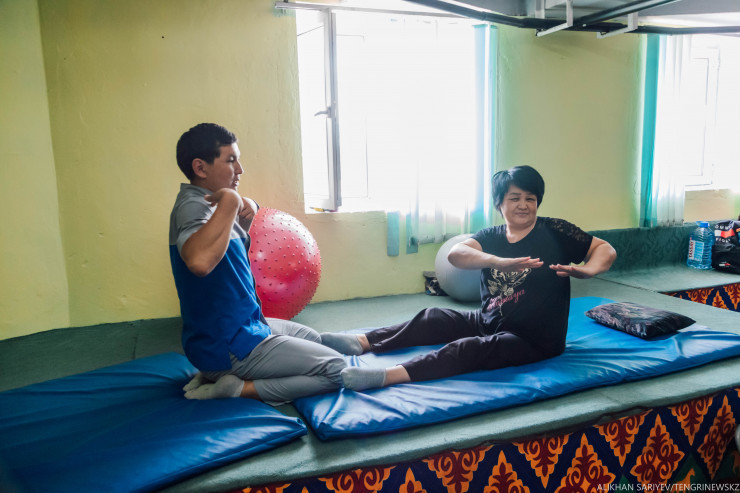"К нам приезжали и лежа, и полулежачие, - рассказывает Елдос. - Поначалу они не могли сидеть, теряли сознание. Постепенно кто-то стал сидеть, кто-то - кушать и одеваться самостоятельно. Те, кто долго занимался реабилитацией, научились стоять, ходить с помощью костылей по дому, в спортзале, отказывались от колясок. Если я вижу, что люди к нам снова приехали, то понимаю, что есть результаты. В основном они приезжают повторно. В любом случае те, кто приезжает, на одну ступень становятся лучше".