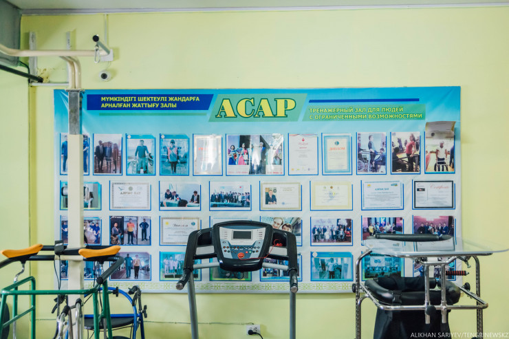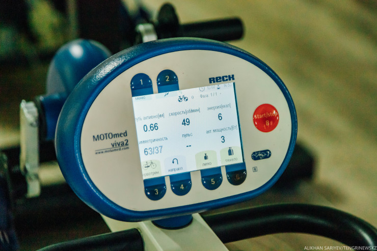 "Мотивация играет ключевую роль в выздоровлении, - объясняет он нам. - Был у нас такой парень Мирас, после аварии он не мог ходить, а сейчас ходит! Сегодня понедельник, и народу не так много, а вообще у нас человек 30 тренируется. Самому маленькому - три года, у него ДЦП. А самому взрослому - 66 лет, он поступил с инсультом".