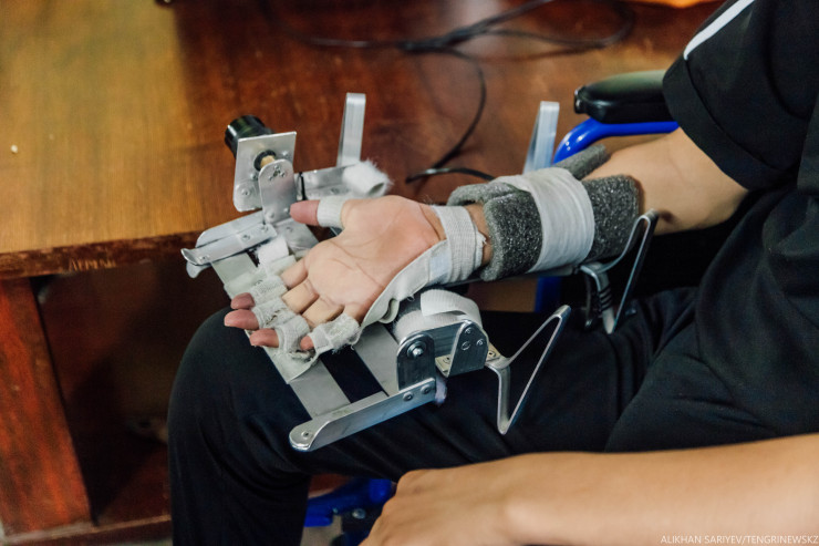"За все время работы центра самый тяжелый случай был у Елдоса, - делится с нами Фатима Тайжановна. - Произошла авария, потом неправильная транспортировка. Был сломан шейный позвонок. Ему на тот момент было всего 19, он закончил колледж. Мы не знали, что это за травма, думали, полежит и пойдет дальше учиться, но это была полная парализация. За прогнозы никто не брался, писали всюду: и в Китай, и в Корею, все нам отказали".