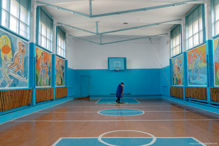 Школьный спортзал.