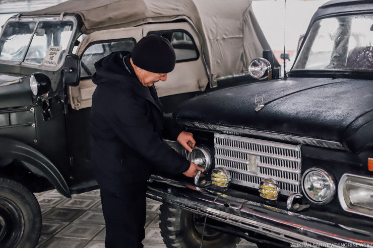 "Эту машину сдали в Иссыке на металлолом, - рассказывает наш собеседник об одной из них. - Я ее выкупил. Здесь ходовая, резина ГАЗ-67, фары, панель Москвича, двигатель Волги, руль УАЗа. Такая сборная машина. Мы ее только сейчас в чувство приводим - двигатель, ходовую уже сделали, салон обтянули. Теперь, как я выражаюсь, осталось "губы накрасить".