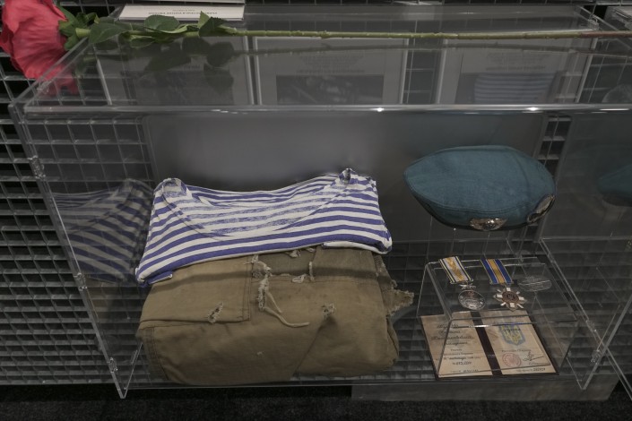 В этом музее есть еще и вторая часть, она находится внутри здания. Экскурсия здесь начинается с просмотра фильма о военных событиях 2014 года, а потом всем показывают фотографии и личные вещи людей, погибших в той войне.