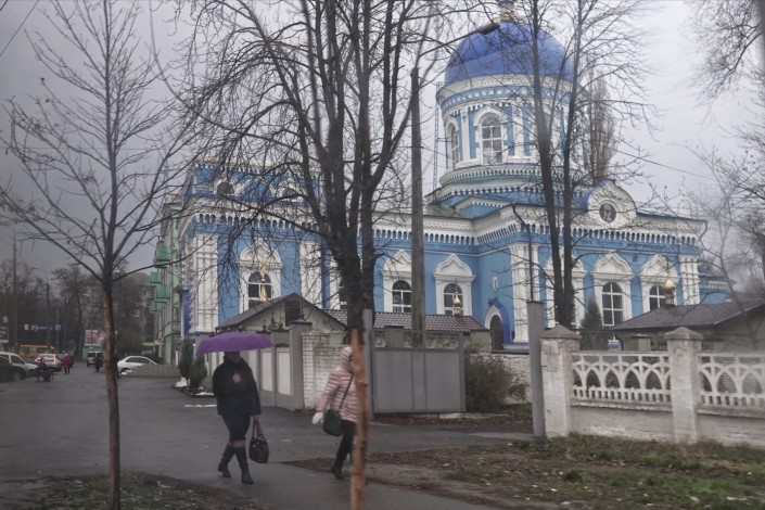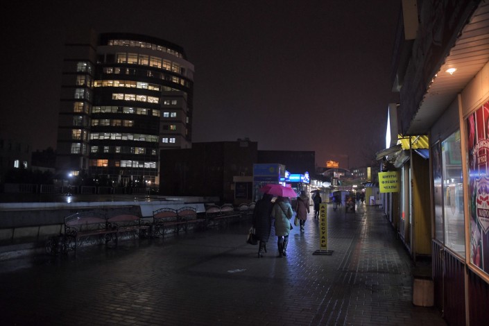 Местные жители замечают, что мы приехали в Днепр в не самое лучшее время года. Идет дождь, большая влажность. Приехали бы мы летом, уверяют они, мы бы увидели совсем другую картину. "Чего стоит только одна набережная Днепра, - говорят наши проводники, - город расположен таким образом, что на закате весь Днепр заливается неповторимым цветом. Очень красиво". Мы гуляем по этой набережной, а чуть позже станет известно, что в этот день в Украине объявлено военное положение. О том, как живет город Днепр, который расположен в 250 километрах от места, где продолжаются боевые действия, - в репортаже Рената Ташкинбаева и Турара Казангапова.