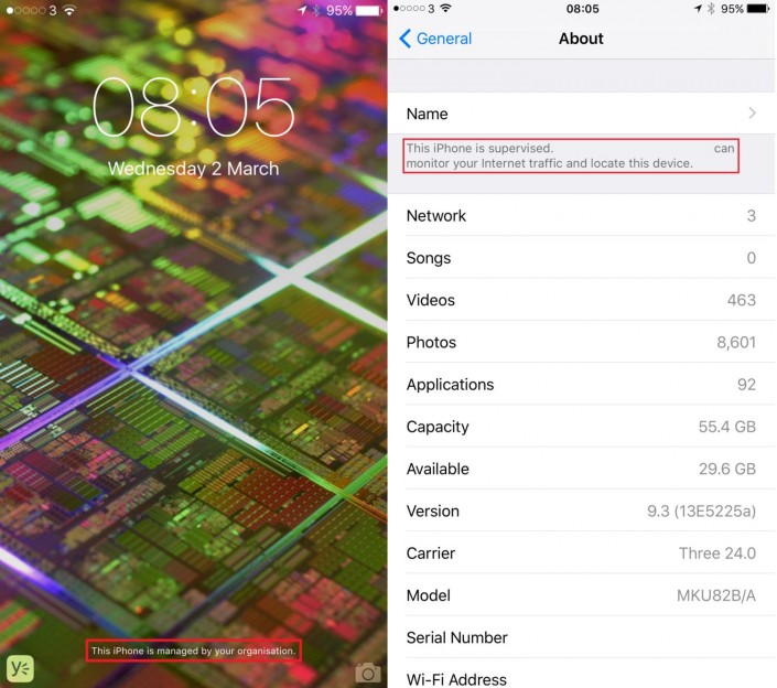 Пользователь Reddit опубликовал скриншоты с iPhone, на который установлена бета-версия iOS 9.3. На изображениях видно сообщение об управлении смартфоном со стороны работодателя. Пользователь отметил, что уведомление появляется исключительно в тех случаях, когда телефон контролируют.