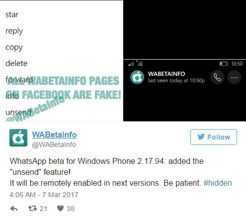 Нововведение будет протестировано в бета-версии WhatsApp для Windows Phone. А затем будет постоянно установлено в будущих версиях мессенджера. Поэтому пользователям рекомендовали "запастись терпением".