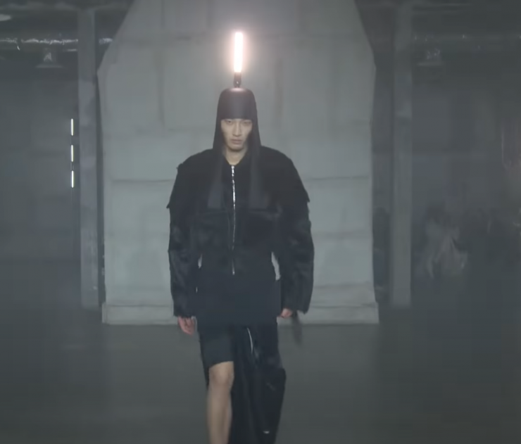 К слову, дизайнер является крестным отцом готики в мире моды. Более того, ежегодно модный дом устраивает настоящее шоу во время показов. Для просмотра показов Rick Owens всегда требуется особый настрой. Например, в этот раз их буквально бомбардировали стробами света – модели дефилировали с флуоресцентными лампами на головах.