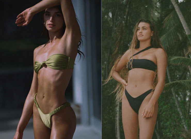 Для того чтобы купальник визуально удлинял ноги, отдавайте предпочтение вариантам с высокими вырезами на бедрах. Это могут быть классические бикини или модели на завязках.