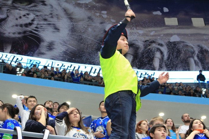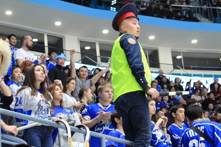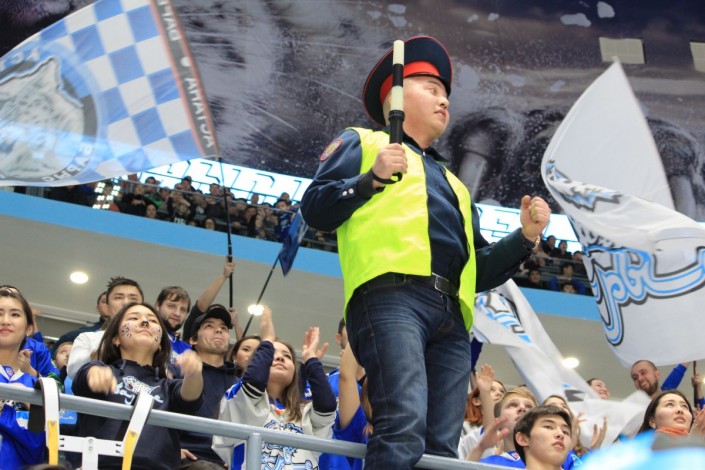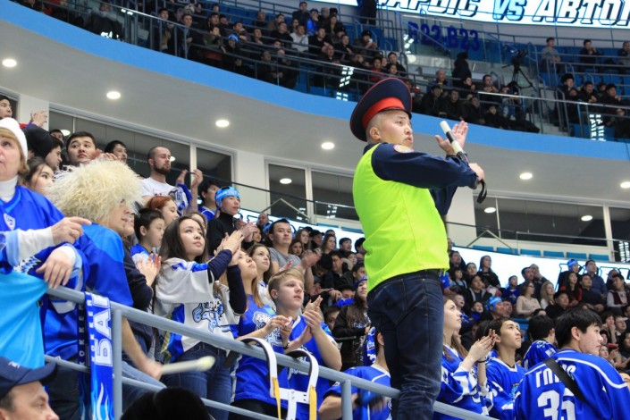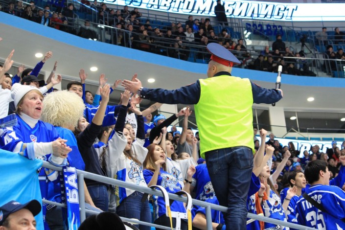 Болельщик в костюме дорожного полицейского стал одним из героев матча "Барыс" - "Автомобилист" (Екатеринбург), который состоялся на столичной ледовой арене вечером 5 января. Своими активными действиями фанат заводил зрителей на трибунах, сообщает спортивный портал Vesti.kz.