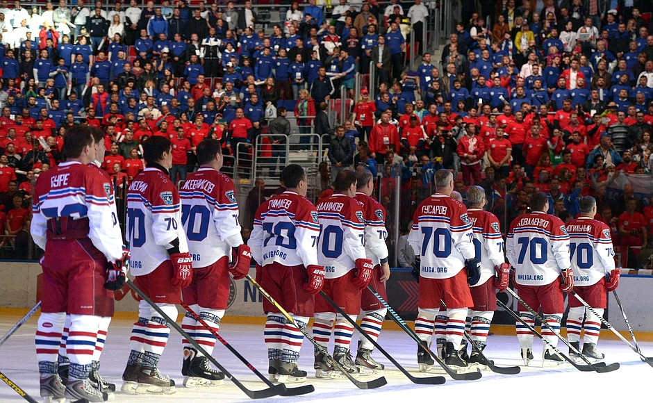 Перед началом гала-матча Ночной хоккейной лиги. © kremlin.ru