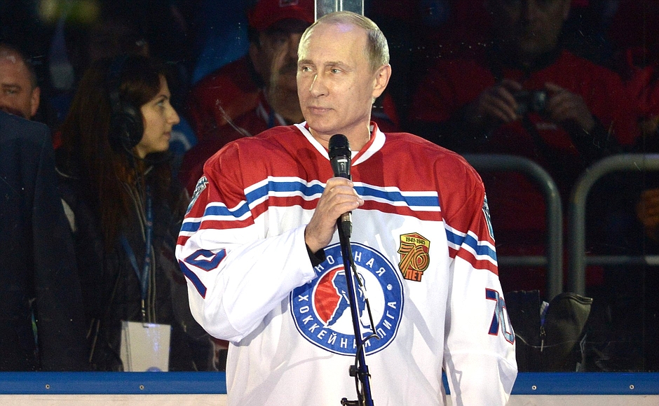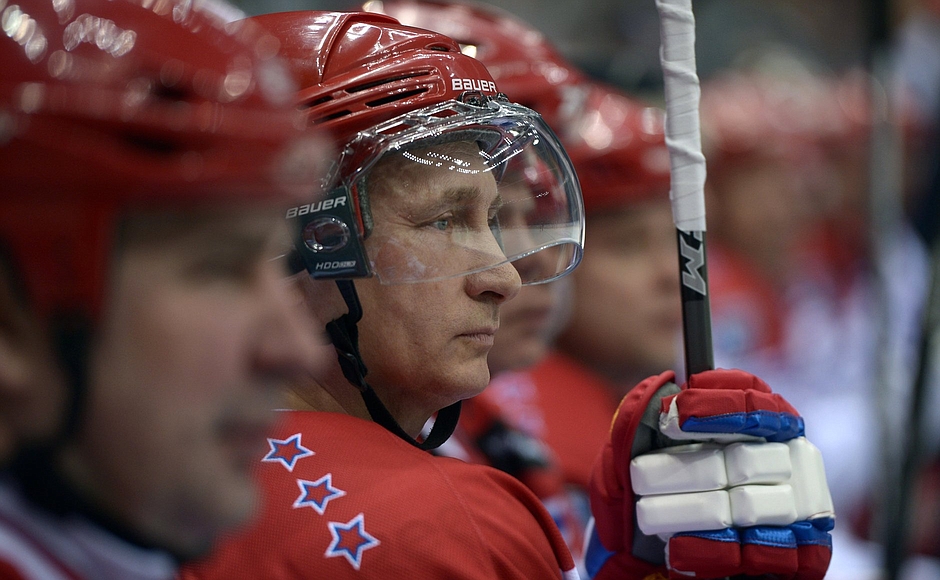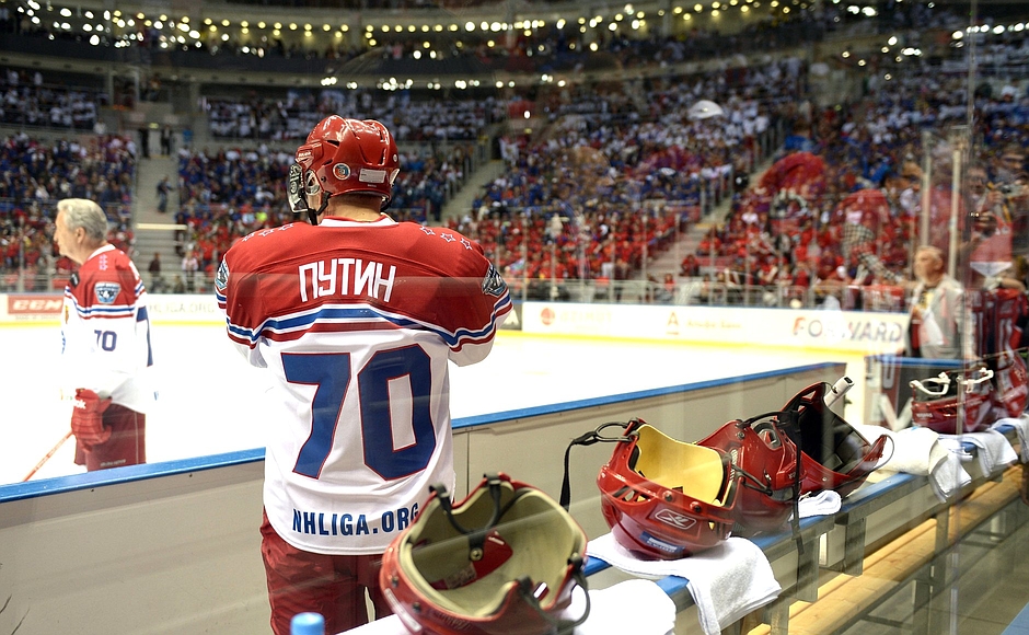 Путин, как и остальные участники его команды, вышел на лед под номером 70 в честь юбилея Победы. © kremlin.ru