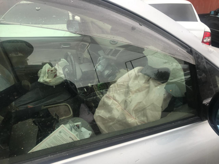 Далее, продолжив движение, водитель совершил лобовое столкновение с припаркованной полицейской автомашиной марки Kia, затем наехал на Lada priora и Toyota Camry, что также были припаркованы рядом. Водитель служебного авто - полицейский Мереке Отаргазы с переломами обеих ног был экстренно госпитализирован.