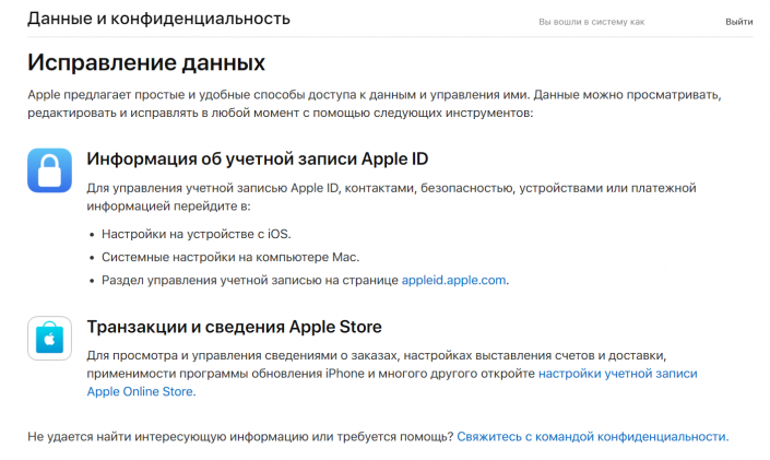 Этот раздел позволит пользователям техники и сервисов Apple скачать все свои личные данные на компьютер и безвозвратно удалить часть или всю информацию о себе при необходимости. К ней относятся история звонков, напоминания, фотографии, видео, контент Apple Music и другое.