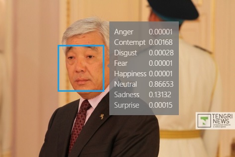 На этой фотографии министр обороны Имангали Тасмагамбетов нейтрален на 75 процентов и грустен на 21 процент.